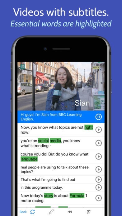 ・ニュースやサブタイトルやトランスクリプトの語彙を保存する上に、フラッシュカードで復習できることです。