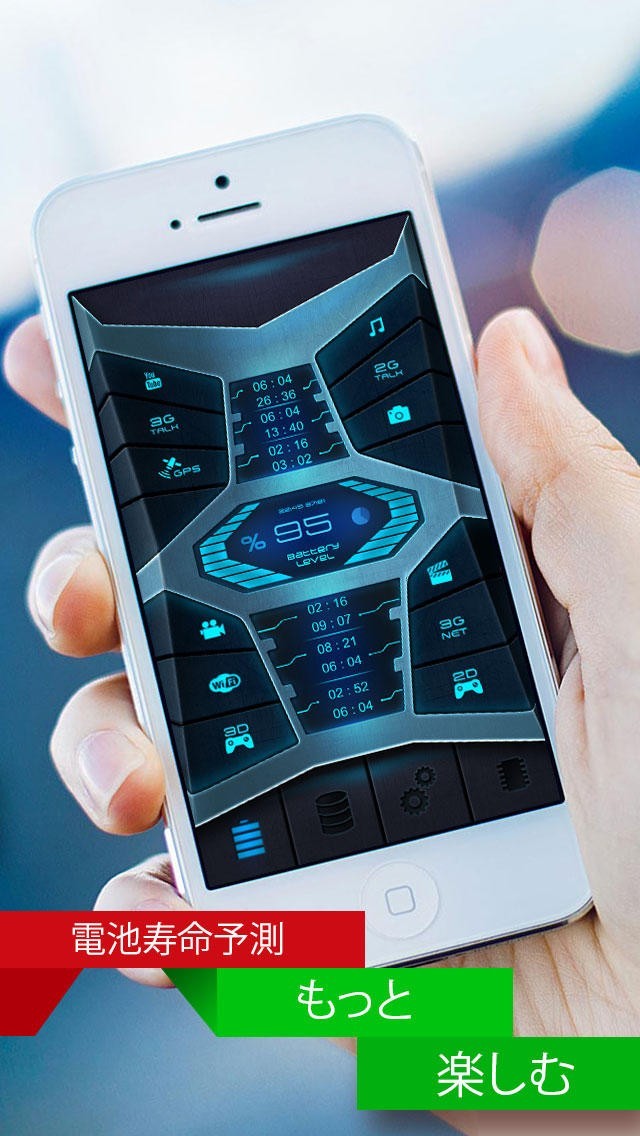 • 電池の寿命予測:再充電にかかる時間、使用用途に応じて表示