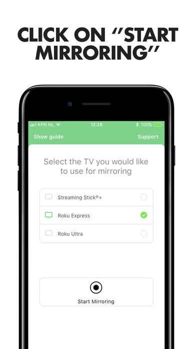 4. Click on Start Mirroring to start mirroring on the Roku that is currently selected. After that, you can just go to any other app on your iPhone or iPad and the mirroring just continues to run.