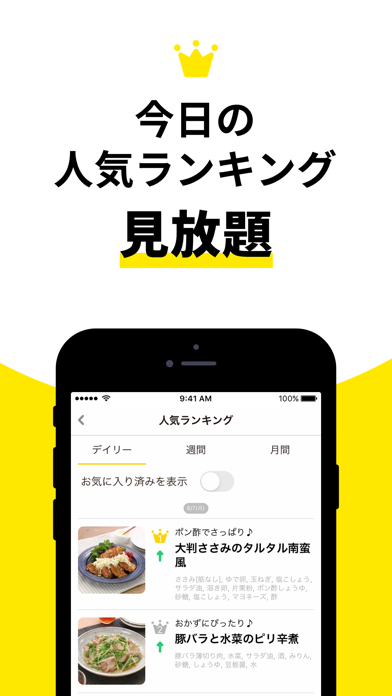 ランキングから人気レシピをチェック!気になるレシピはお気に入り機能で即保存!