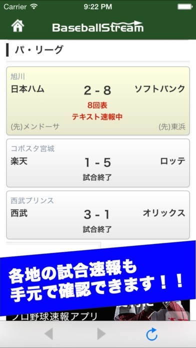 BaseballStreamは、プロ野球&メジャーリーグニュース/試合速報アプリケーションです。