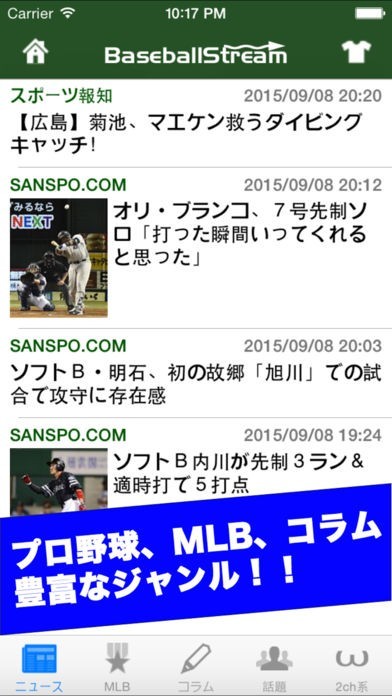 プロ野球とメジャーリーグのニュース/速報アプリ「Baseball Stream」のスクリーンショット