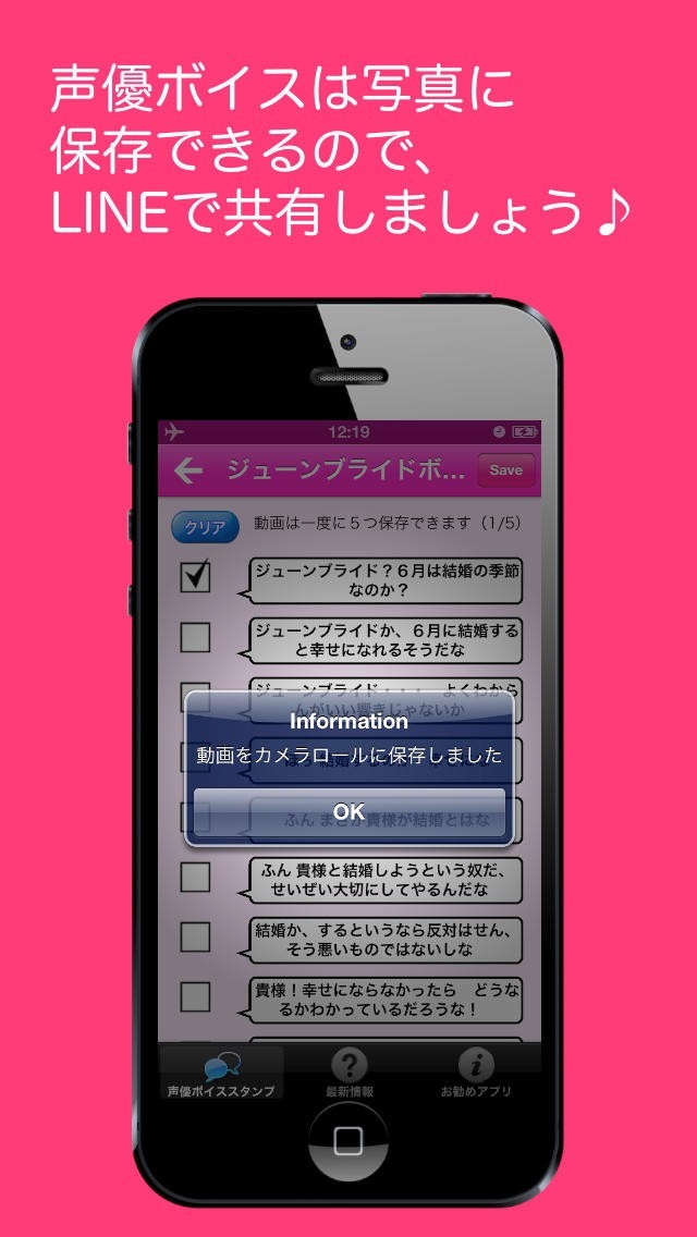 カメラロールに声優音声を保存できたら、あとはLINEで送って楽しもう