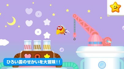 ステージのいたるところにタッチフィードバックを設けています。卵を探す旅の道中、タッチアクションでブレイクダンスする姿や目がまわる姿など、キョロちゃんのコミカルな動きが楽しめます。また、マルチエンディング(複数のエピローグ動画)で子供を飽きさせず何度でも楽しんでいただくことができます。