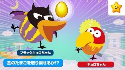 悪役ブラックキョロちゃんに奪われた大事な3つの金の卵。キョロちゃんと一緒に知恵と勇気を振り絞って金の卵奪還の旅が始まります。