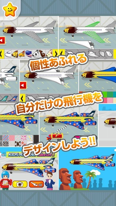 絵柄だけではなく、飛行機の機首、翼などそれぞれのパーツもプレイヤーが豊富なデザインの中から選んで組み合わせ、自分だけのかっこいい飛行機を作って遊ぶことが出来ます。