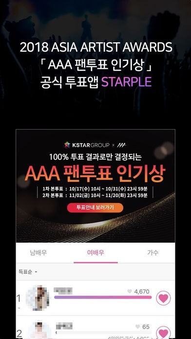 STARPLE - 2018 AAA 공식투표 앱のスクリーンショット