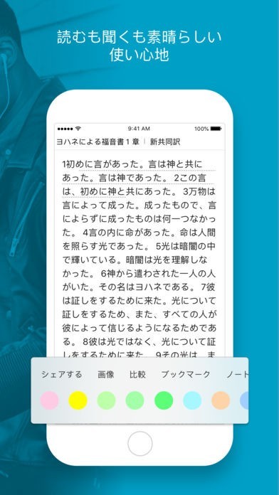 聖書の中でお気に入りの部分があれば、ブックマークして保存することができます。何度も読み返して暗記したり、SNSでシェアして聖書の教えを他の人に紹介することも可能です。