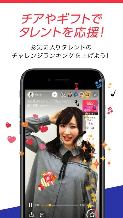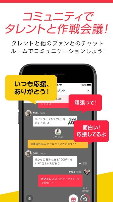 ランキング機能もこのアプリの特徴です。ユーザーによる応援によってランキングが上昇すれば、アイドルやタレントに活躍の場所が用意されるようになっています。ランキングを駆け上るためには、応援ポイントを獲得することが必須です。好きなアイドルへアイテムを送ってランキングを上昇させたり、他ユーザーと協力しあって応援したりと一体感を楽しめます。