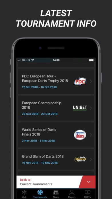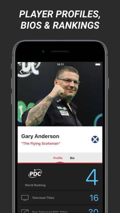 ダーツの試合やニュースを見ることができるアプリ PDC