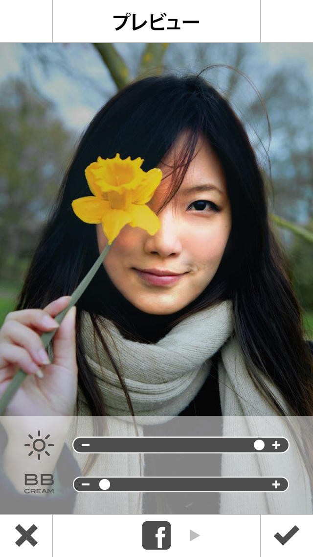 撮った画像は自動で美肌補正!手間いらずのアプリ。