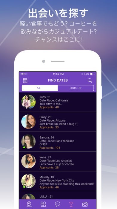 退屈ですか?「デートプラン」や「ステータス」を投稿して、今あなたが何をしているのか、みんなに伝えることもできます。このような機能は、デートを取り付けるとき、確実に役立ちます;)