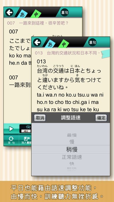 5. 中日對照:可設定中文或日文顯示,以訓練閱讀與理解能力。