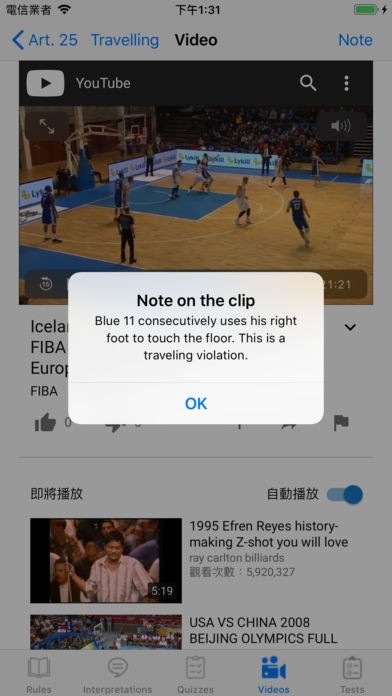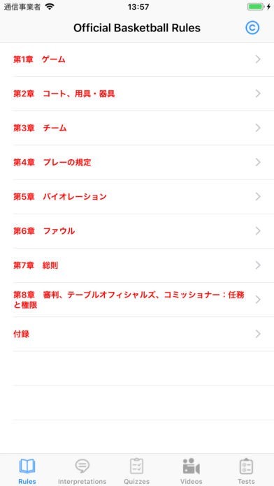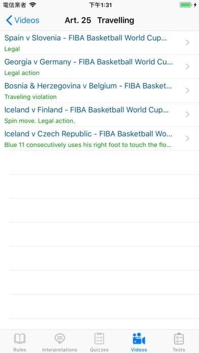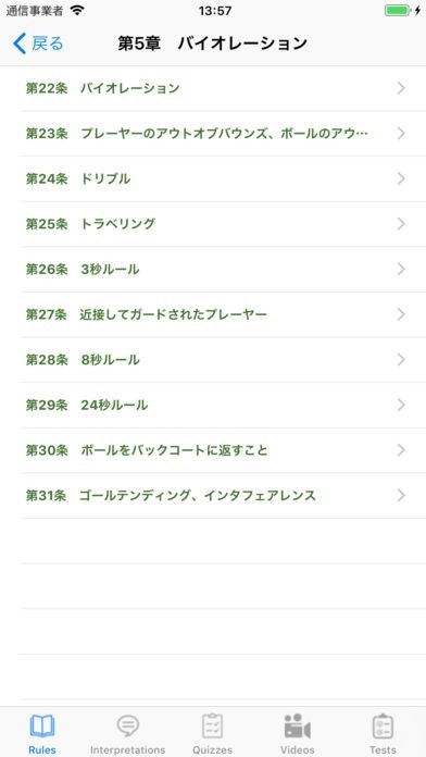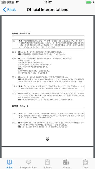 App Storeより引用This app connects Official Basketball Rules, Official Interpretations, and Some quizzes into together. Referees can study the rules by only one click to the corresponding interpretations and quizzes.