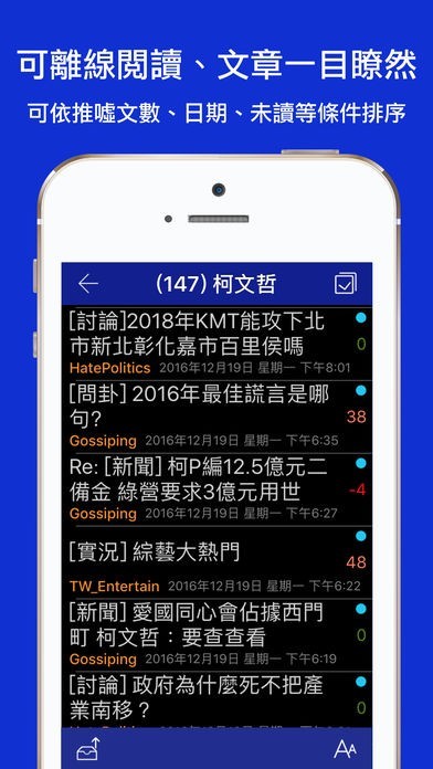 App Storeより引用批踢踢快訊 (PTT News) -- 不用登入、可離線閱讀、最方便的批踢踢閱讀器