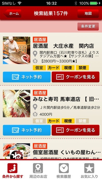こだわり条件で寿司店を検索できる!