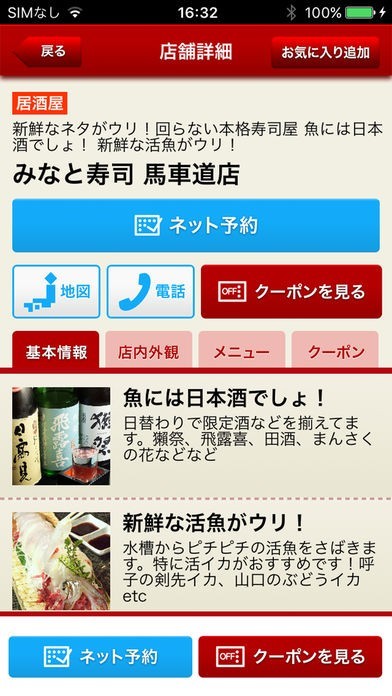 お気に入り機能が搭載されているので、実際に利用してみて気に入った店舗を登録しておくことで、後になってからでもスピーディーに情報を検索することが可能となっています。