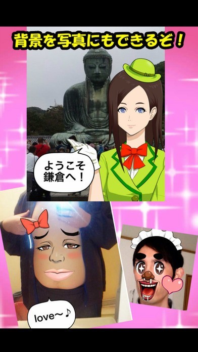 写真を背景にしたり文字や写真をスタンプとして貼り付けられるのでちょっとした写真加工アプリとしても使える。