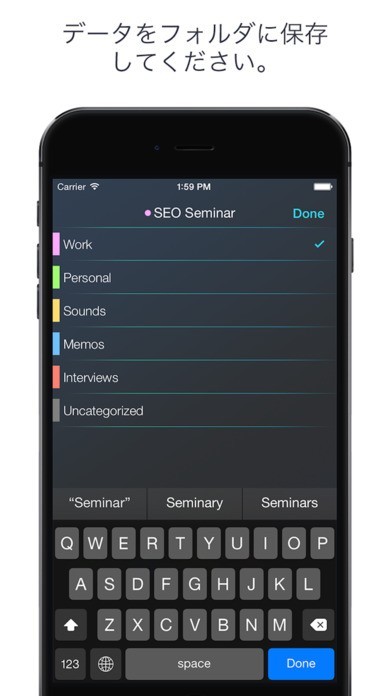 データの中で大切な部分にタグをつけることができます。そうすることで、より大事な箇所が分かりやすくなります。タグの名前はいつでも変更することができるので、便利です。