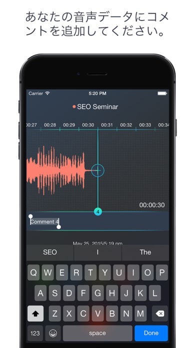 音声データの中でも重要なポイントにコメントを加えることが可能