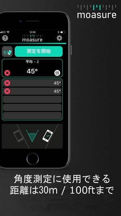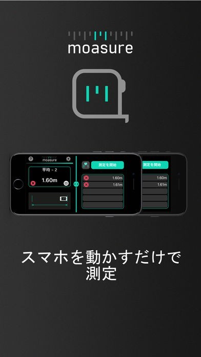 App Storeより引用便利で簡単。Moasureは300mの巻き尺、定規、分度器、ゴニオメーター(角度計)のすべての機能を備えたシンプルなアプリです。