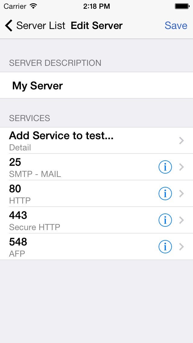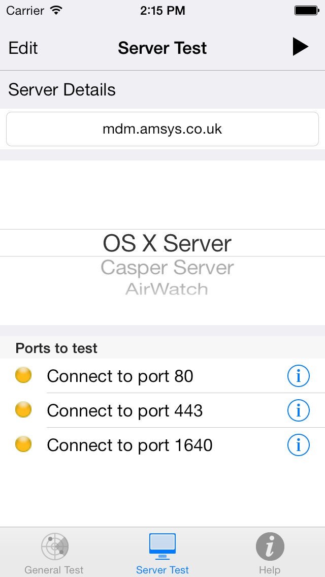 • If you are using your own server/MDM solution you can test the reachability to that server and key services running. In the list we have added 3 popular MDM solutions with their key services. You can also add your own server to the list.