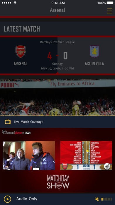 「Arsenal」はチーム公式アプリであるため、独占情報や他では見られないインタビューなどを閲覧することができ、熱心なグーナー(アーセナルのサポーター)の方におすすめです。