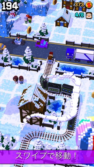 高速で迫ってくる汽車に追いつかれる前にレールを敷いて誘導していくゲームアプリが「Tracky Train」です。レールを敷く前に汽車に追いつかれてしまうとクラッシュしてしまうので、スピーディーにレールを敷いていく必要があるほか、汽車に乗客が乗って目的地に降りることができるように誘導することで時間を稼ぐことが出来ます。用意されているのは全部で8種類のカラフルなステージと17種類の汽車、120人以上の個性豊かな乗客たちになります。