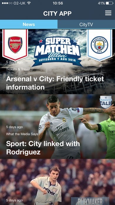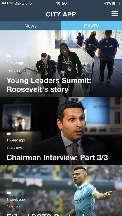 CityAppはマンチェスターシティフットボールクラブの公式アプリで、すべて英語で表記されていますが、プレミアリーグなどでのゴールシーンの画像や選手インタビューが閲覧できます。
