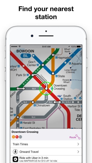Unsure which is the closest Boston T station to you? Wherever you are the app will show your nearby stations and how far away they are.