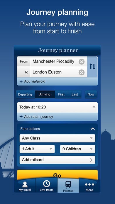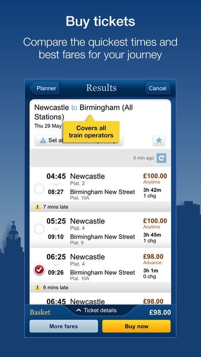 ビジネスや観光でイギリス国内を電車で移動する際、列車の旅の予定を立てるのに非常に便利です。日付や時間、人数を入力して最適なチケットを選択、購入まで可能です。電車の発着ホーム番号もリアルタイムで表示されるので、慣れない駅での乗り継ぎにとまどうこともありません。