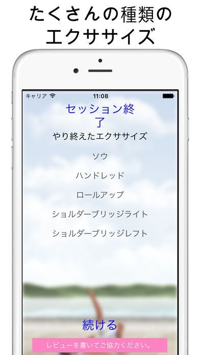 簡易的なタイマー機能が搭載されているので、毎回のエクササイズはきっかり5分間で終了します。余裕が出てきたら1エクササイズのセット数を少しずつ増やして負荷をかけるとより効果的です。
