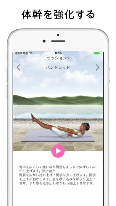 すべてのエクササイズには分かりやすい説明と3Dイラストが用意されているのでピラティス初心者の人でもスムーズにエクササイズに取り組めて、正しい動作を習得することができます。
