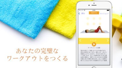 自宅でたった5分でエクササイズをすることが出来るようになるので、テレビドラマなどを見ながらでも身体を鍛えることが可能となります。 例えば「ピラティス」、「お尻&足」などというようなパネルが用意されているので、それをタップすることによって詳しい説明を見ることが出来ます。 下部には詳しい説明や気をつけなければいけない点、コツなどの情報が記載されており、上部には画像による説明がなされているので、解りやすいです。 さらには、何回出来たかを入力することで、休憩していい時間を教えてくれるので、心拍数を調整して脂肪燃焼しやすく連続で運動できます。