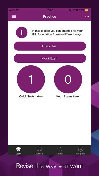 The mobile application “Official ITIL® 4 Exam App” (the App) is subject to licence terms. By using or purchasing the App you acknowledge and agree that you have read and understand these terms and conditions and agree to be bound by them as in effect at the time of download. Please read the full Terms and Conditions here: www.tsoshop.co.uk/itil-app-terms-conditions