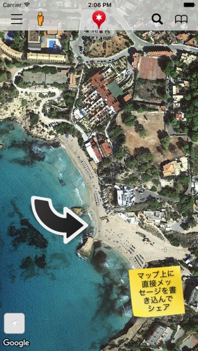 マップ上にメッセージを書き込んでシェアして情報の共有ができる