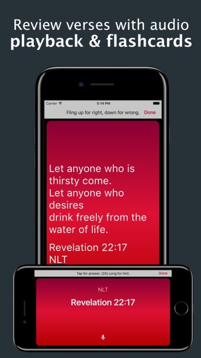 Remember Me comes with an array of features to help with your Bible memorization. Use your text-to-speech option to have the Bible verses read to you. Use the flashcard feature to study. Set daily reminders, and take randomly generated Bible quizzes. Add and delete Bible study verses from the queue easily, and watch as your Known tab fills with God's Word hidden in your heart.