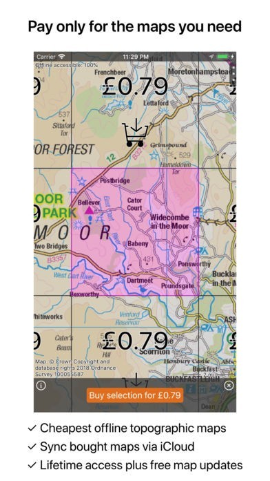 In order to use the detailed topographic maps you have to make an in-app purchase. You can easily select the sections you need on an overview map. You get lifetime access to purchased sections including future map updates. A discount will be given if you buy a large section at once.