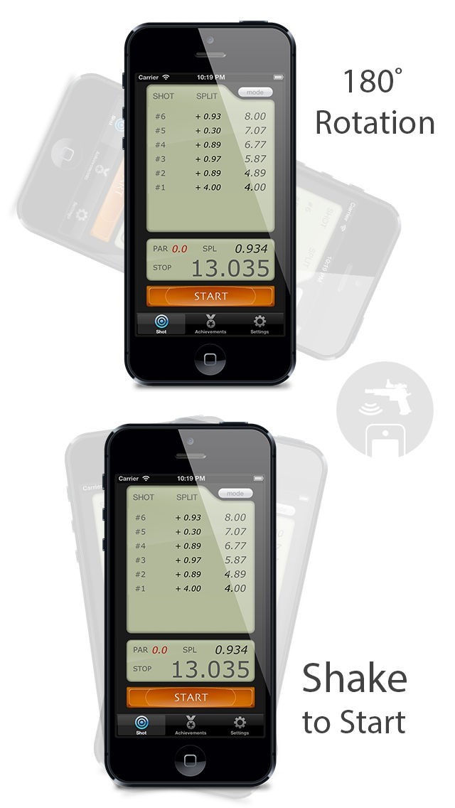 スマホ端末をシェイクするだけで簡単にタイマーが起動出来るようになっています。また最初の射撃速度とトータルの時間が保存出来るため、訓練や練習にも重宝するでしょう。