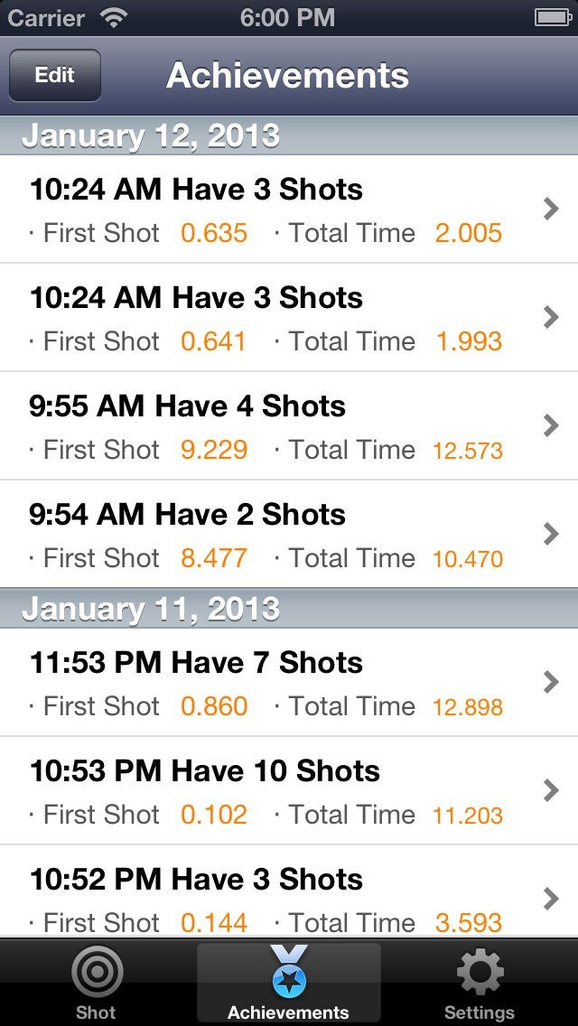 射撃のショット記録を一覧で管理出来るようになっています。測定した時間や日付を表示する事が可能で、叩き出したスコアを電子メールに素早く共有出来るのがメリットでしょう。