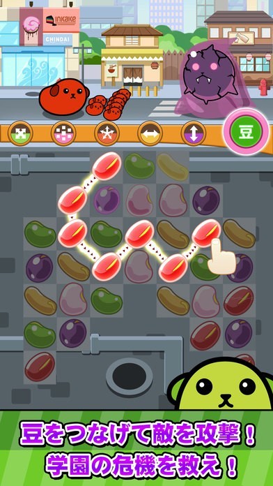 同じ種類の豆をどんどんつなげて豆しばたちにパワーを送ろう。