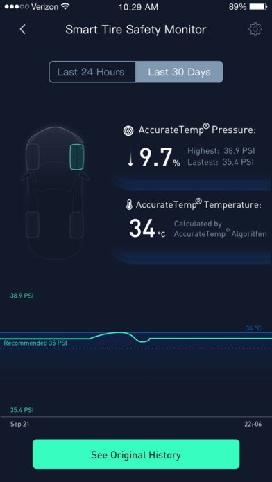タイヤ空気圧はスマートフォン画面で確認が可能