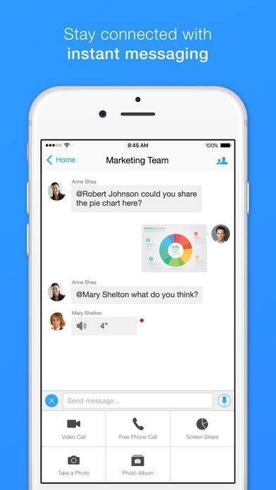 スマホやタブレット端末から素早くビデオ会議が開始出来るようになっています。データの共有やファイルの添付をまとめて行えるのも利点でしょう。クリアな音質で会議を視聴していけます。