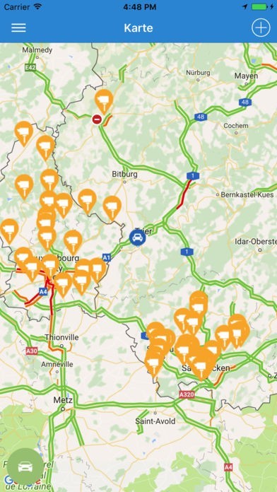 「Volksfreund.Blitzer」は、ドイツのザールラント州やその隣国のルクセンブルクにおける速度取締機の位置を教えてくれるアプリです。欧州でも日本と同様に、道路でのスピード違反を自動で取り締まる速度取締機が使われています。このアプリはそんな速度取締機の場所を画面上に表示、さらに走行中のルート上にある場合には前もって警告してドライバーに注意を促し思わぬ違反を防いでくれます。