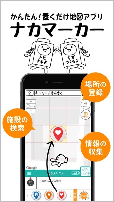 かんたん!置くだけ地図アプリ:ナカマーカー(・∀・)人(・∀・)とは?