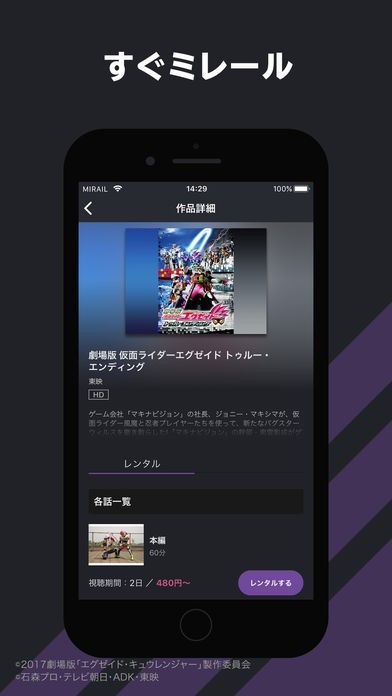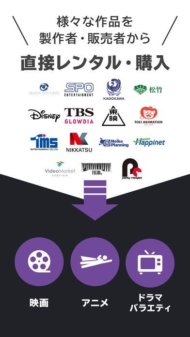 ・映画、ドラマ、アニメを含む多くの作品にアクセスし、動画の購入またはレンタルすることができます。