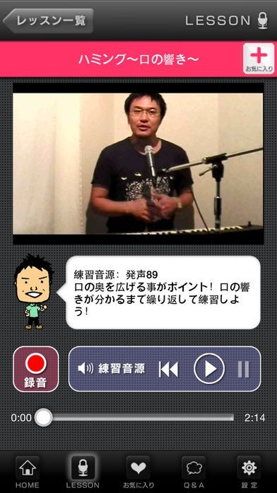 自分の好きなトレーニングを保存しておけるお気に入り機能と動画を見ながら実際に練習が出来る録音機能が搭載されています。録音機能は動画によって用意されている練習音源と共に使うことで1人でも手軽に質の良い練習ができます