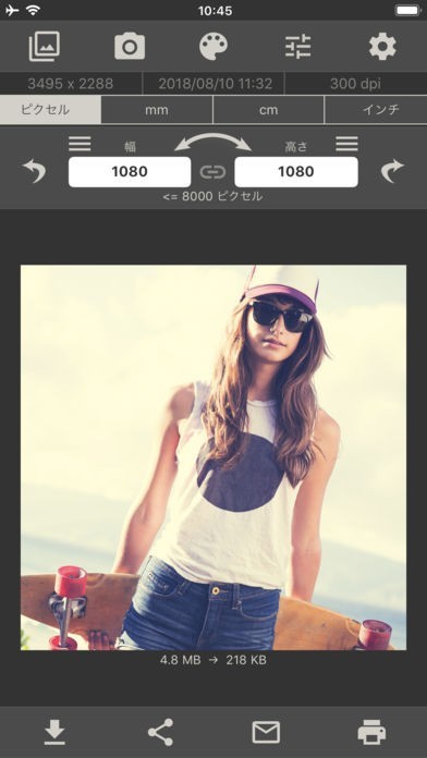 このアプリは画像の大きさを瞬時に変更することが出来ます。幅と高さを指定のプリセットから選択することも出来ますし、手入力することもできます。 それによって、インスタグラムやフェイスブックやツイッターなどに投稿する際に大きすぎたり小さすぎて見えにくいような画像でも見やすくしてくれます。 また、壁紙に利用したい場合にちょうどいい大きさに変えたりすることもできますし、ブログに載せるのに適したものにするといった使い方などもできます。