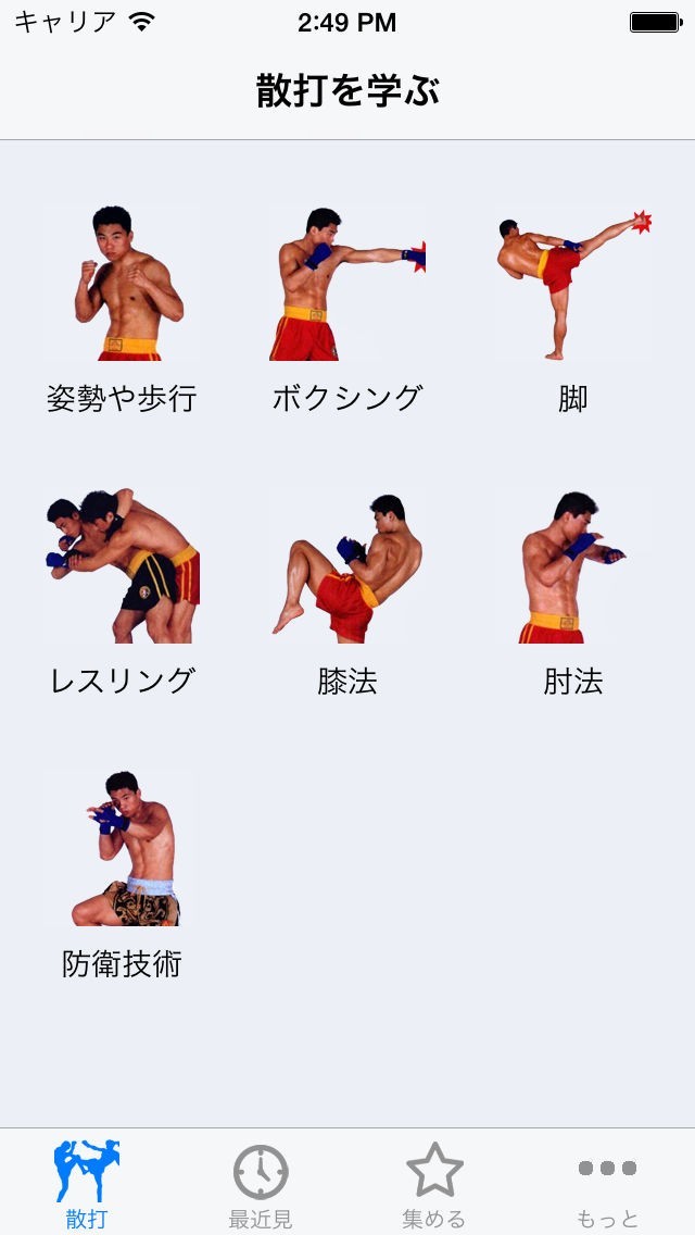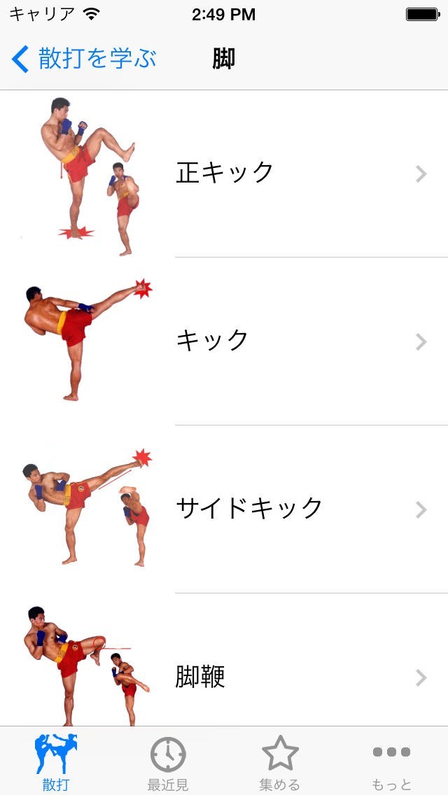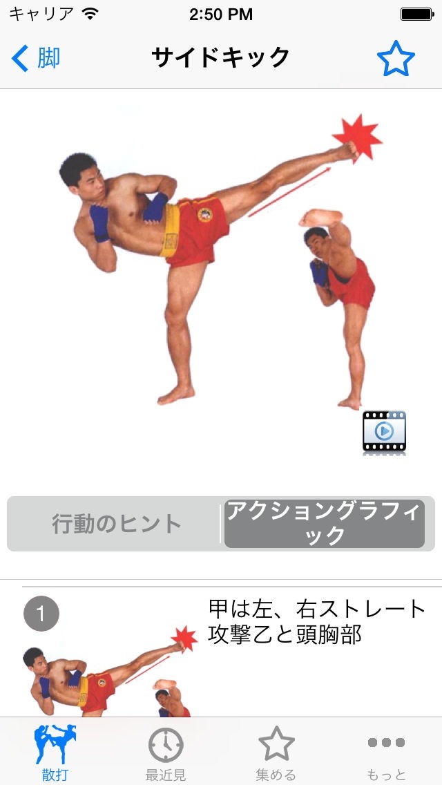 動画で正しいパンチやキックを学べる