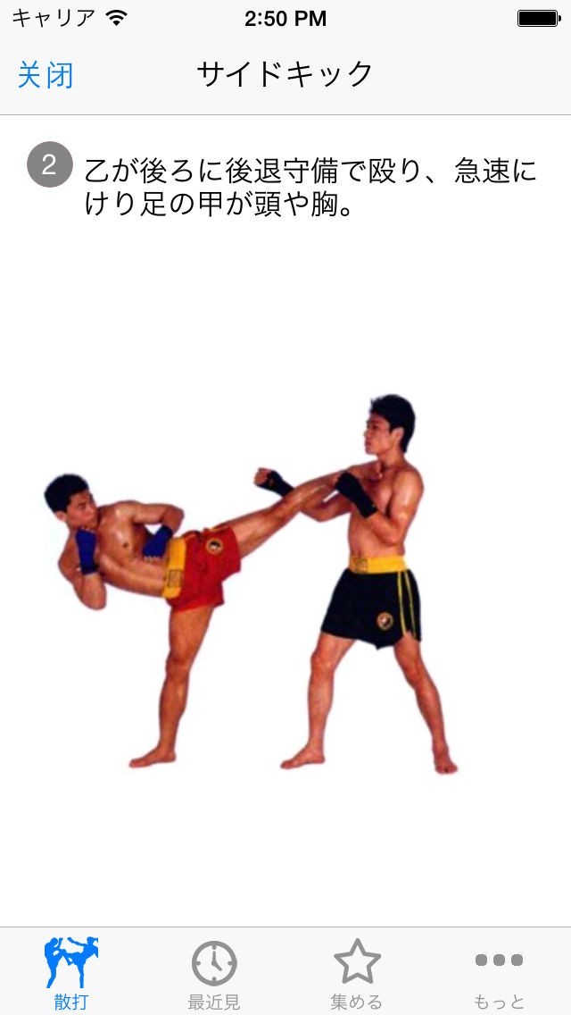 最大の攻撃力を発揮するには、正しい型を体に覚えさせることが必要です。アプリを使えば、オフラインでも技の型を確認しながら練習を行えます。地道な反復練習によってのみ成長します。